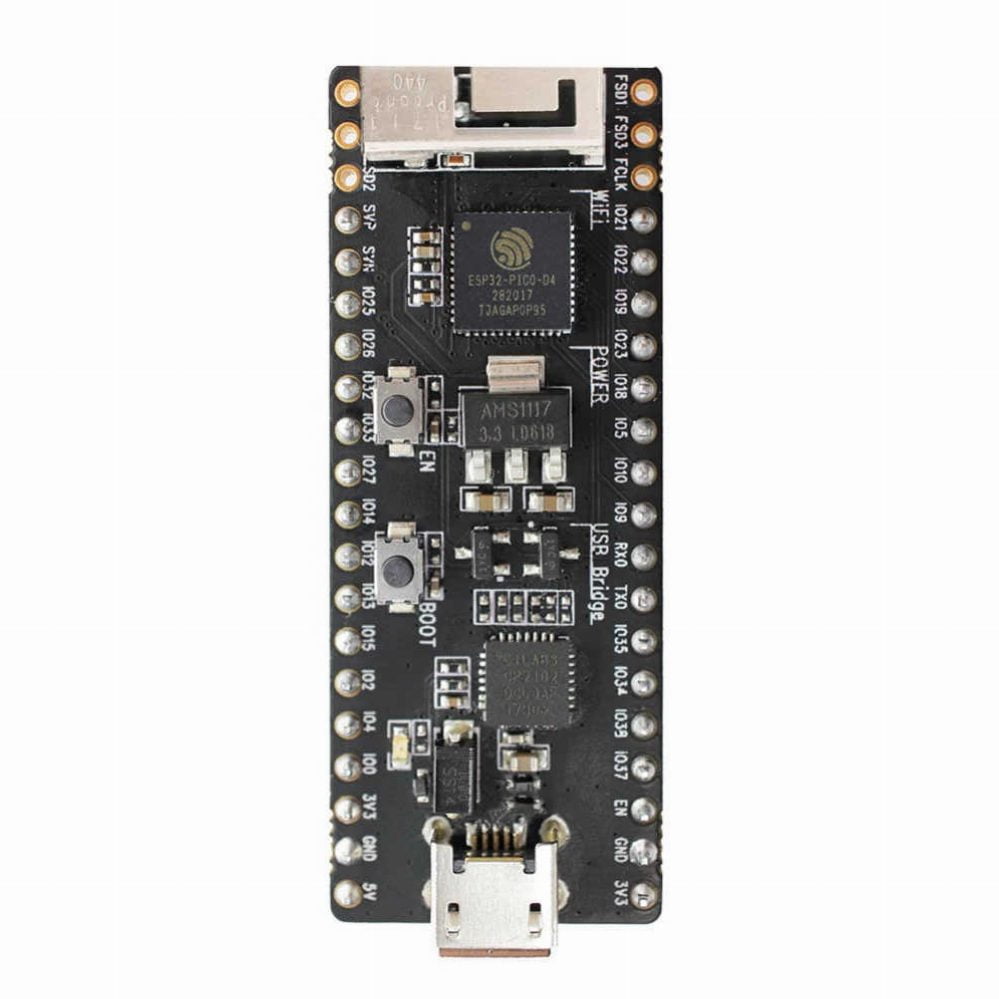 ESP32-PICO-KIT V4 ist ein Mini-Entwicklungsboard von Espressif. Das Herzstück dieses Boards ist das ESP32-PICO-D4, ein System-in-Package (SIP) -Modul mit kompletter WLAN- und Bluetooth-Funktionalität. Im Vergleich zu anderen ESP32-Chips integriert das ESP32-PICO-D4 mehrere Peripheriekomponenten in einem einzigen Gehäuse, das ansonsten separat installiert werden müsste. Dazu gehören ein 40-MHz-Quarzoszillator, 4 MB Flash, Filterkondensatoren und HF-Anpassungsverbindungen. Dies reduziert Menge und Kosten zusätzlicher Komponenten, nachfolgende Montage- und Testkosten sowie die gesamte Produktkomplexität erheblich.